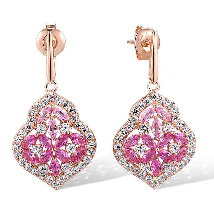 925 Rose Gold plated Sterling Silver Earrings 4.0g with Cubic Zirconia & Created Sapphire