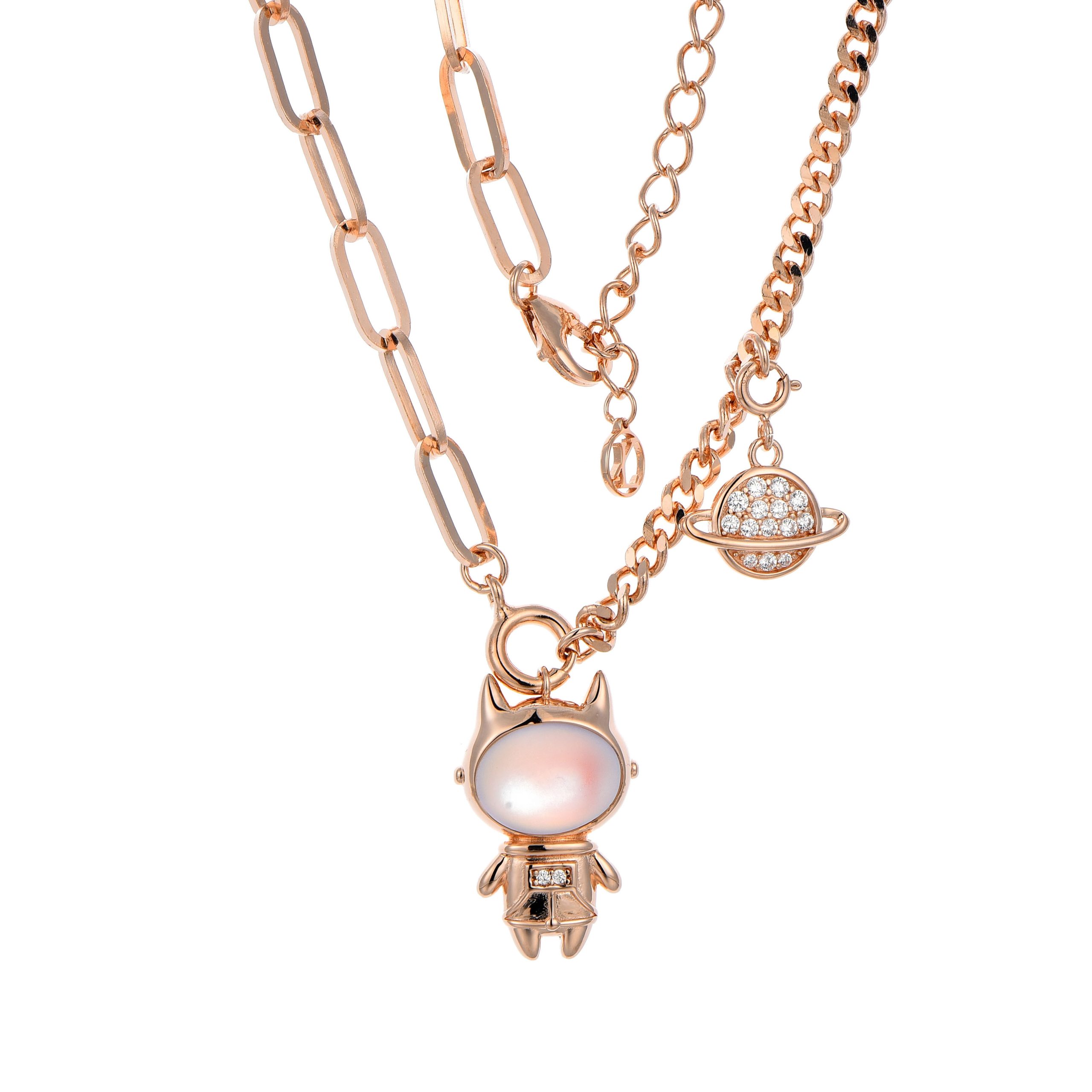 .925 silver jewelry necklace 17.4g with rose gold plating, moonstone & cubic zirconia