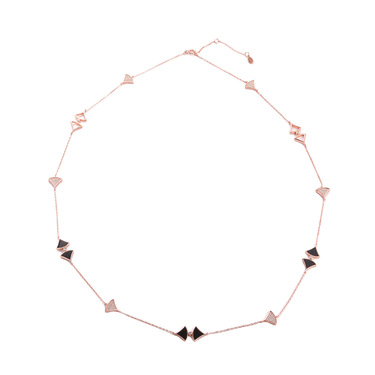 925 Rose Gold plated Sterling Silver Necklace 9.3g with Cubic Zirconia & Synt Onyz