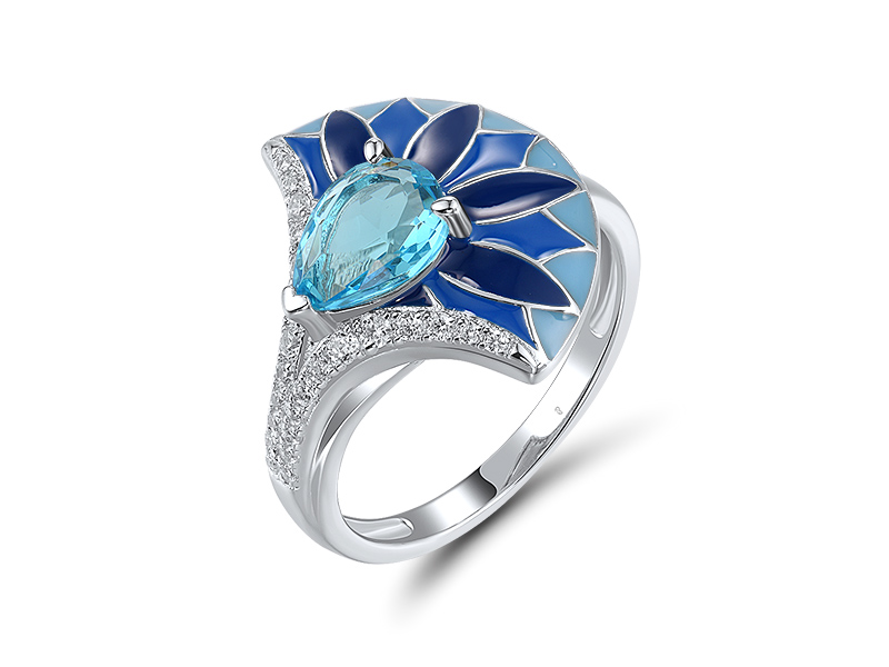 Silver Blue Enamel Ring
