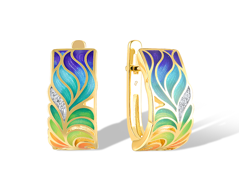 925 Yellow gold-plated Sterling Silver Earrings 4.3g with Cubic Zirconia & Enamel