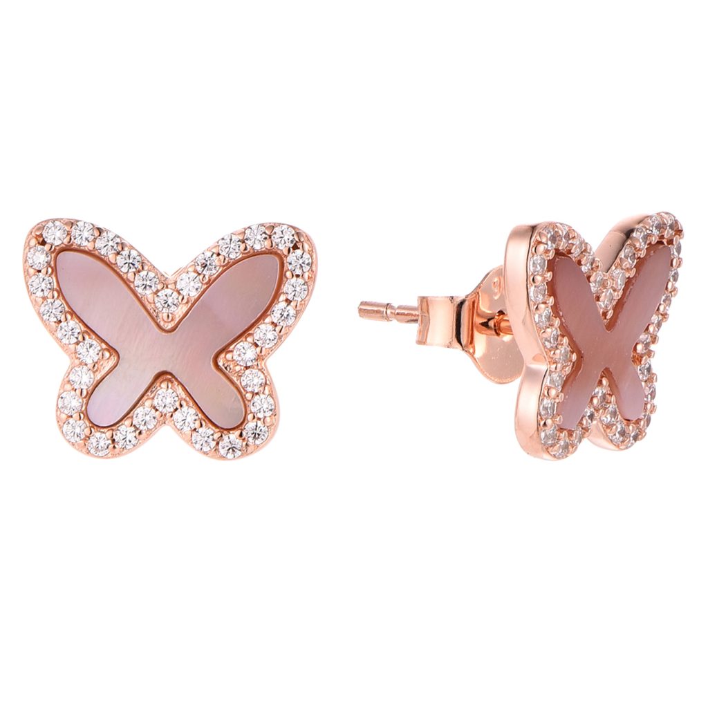 925 Rose Gold plated Sterling Silver Earrings 2.73g with Cubic Zirconia & Malachite