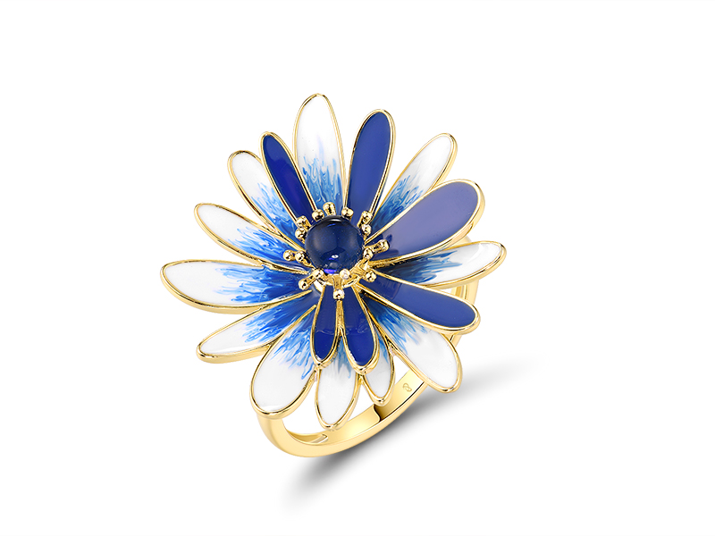 925 Yellow gold-plated Sterling Silver Ring 4.1g with Cubic Zirconia & Enamel