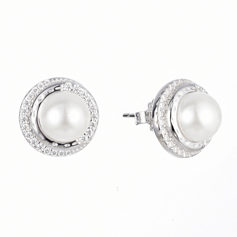 925 Sterling Silver Earrings 3.11g with Cubic Zirconia & Pearl
