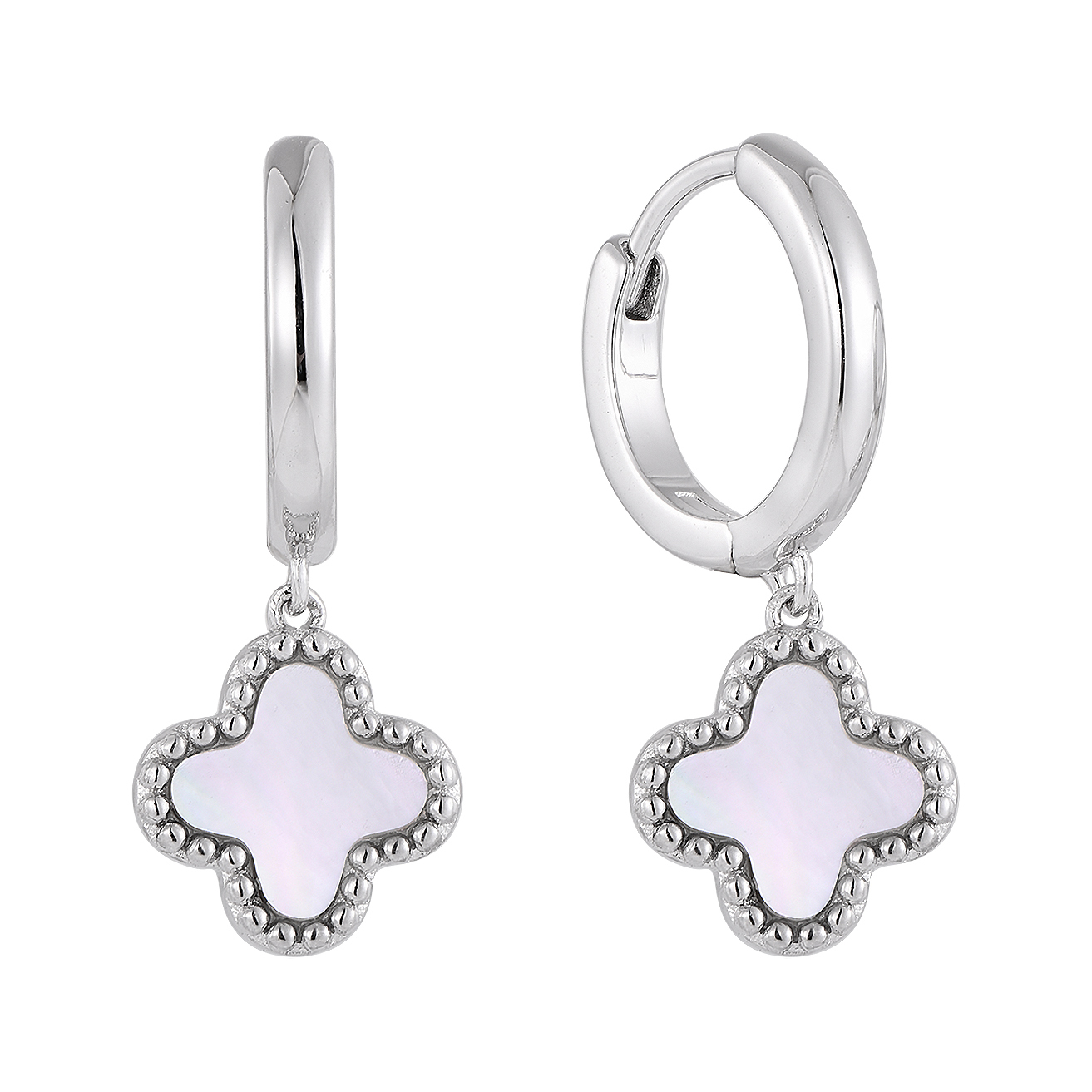 925 Sterling Silver Earrings 3.7g with Cubic Zirconia & Mother of Pearl